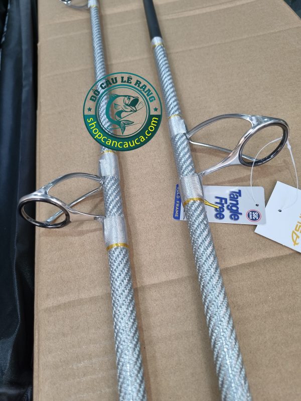 Cần Câu Ashino strong bạch kim bản nâng cấp của năm 2024 khá hoàn hảo, vẫn giữ nguyên dàn phôi cần ashino bạch kim bàu trắng bạc và nâng cấp lên dàn khoen Fuji bướm sứ vàng và bạc cực kỳ đẹp và pát máy Fuji tem vàng và tem đen chất lượng.